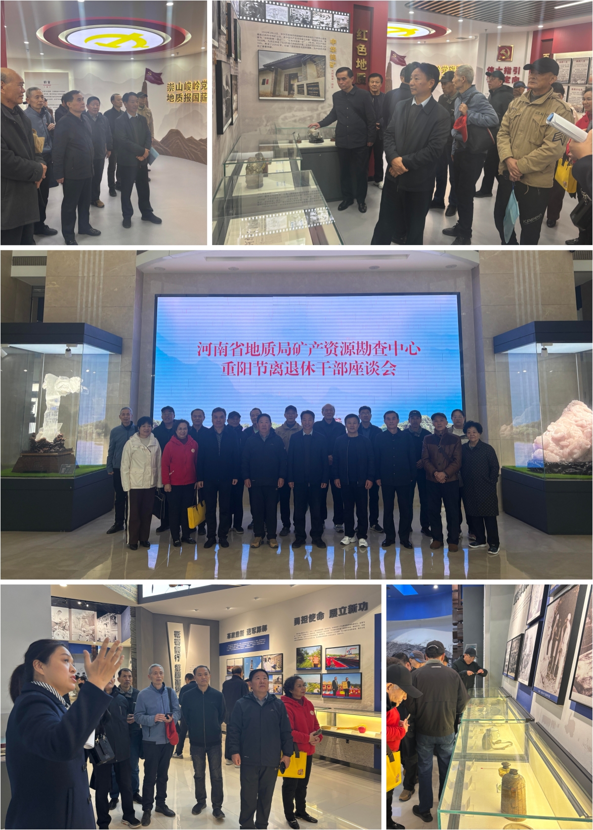 会前,参会老同志们怀着对地质事业的深厚情怀,参观了河南地质党建陈列馆、河南地质文化陈列馆。馆内陈列的一幅幅定格历史的珍贵照片、一件件承载记忆的实物展品,生动再现了 70 年来河南地质工作者扎根一线、攻坚克难的奋斗足迹,也见证了地质事业为地方发展作出的重要贡献。