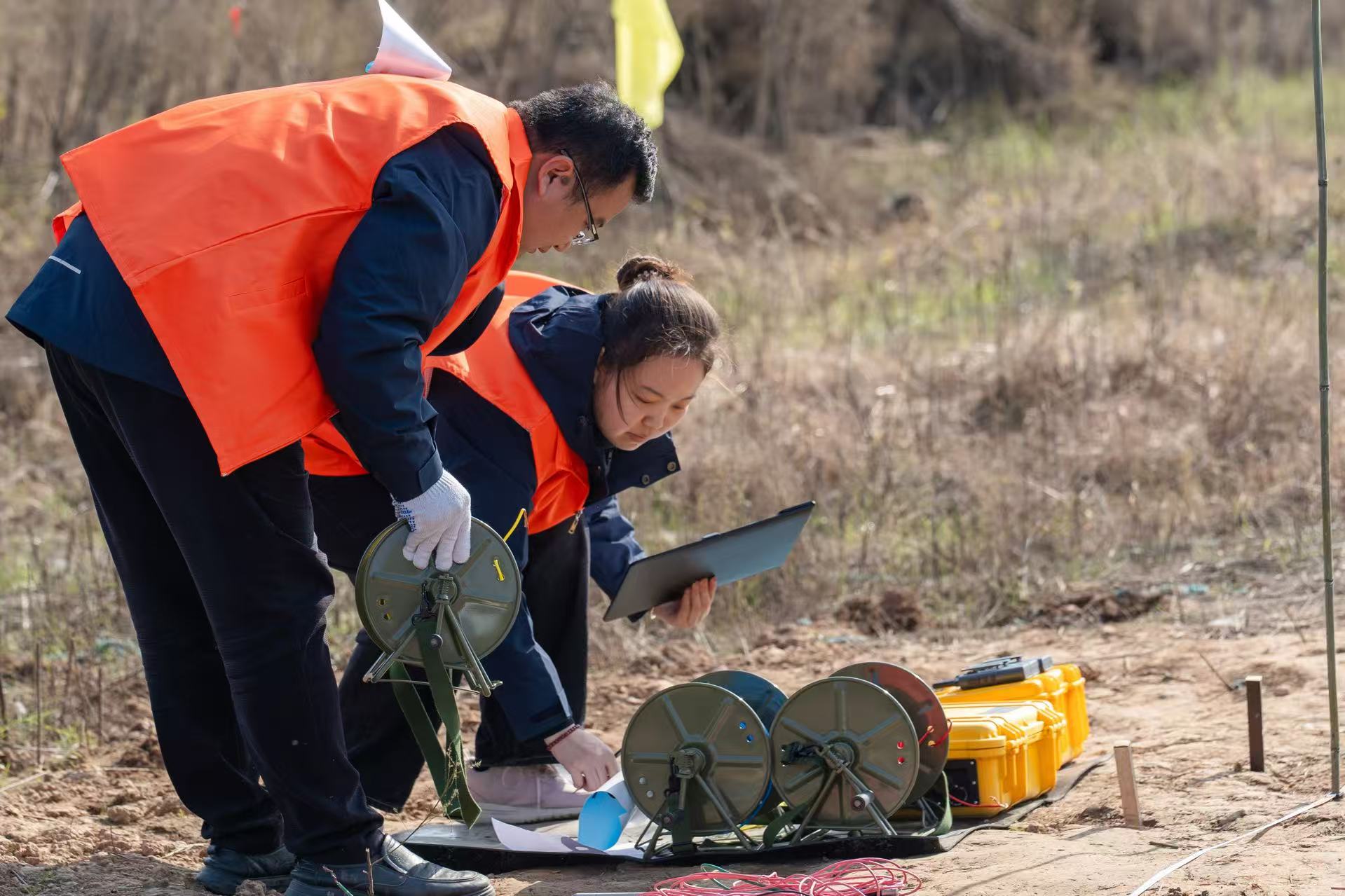 本次竞赛由河南省能源化学地质工会主办,豫地科技集团承办,竞赛采用“理论考试+现场实操”相结合的考核方式,全面检验选手的综合能力。理论试题紧密围绕《地震波场与地震勘探》《地电场与电法勘探》等核心知识,深度考查选手的知识储备和专业功底;电法实操设备采用重庆地质仪器厂DZD-8型全波形直流电法仪,高压电源采用DCX-4B 电池箱,实操环节涵盖数据采集、数据成图与解释等多项任务,精准检验选手在实际工作中的操作熟练度与问题解决能力。现场,选手们在紧张有序的氛围中展开激烈角逐,充分彰显了“劳模精神、劳动精神、工匠精神”的深刻内涵。