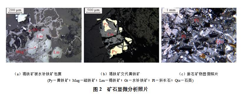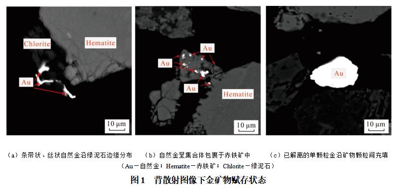 研究成果表明:矿石中主要有价元素为Au;主要矿石矿物为赤(褐)铁矿、磁铁矿、黄铁矿、黄铜矿,脉石矿物主要为石英和长石;主要载金矿物有自然金、赤(褐)铁矿、黄铁矿、银金矿、石英和绿泥石;金矿物以自然金为主,含有少量银金矿和极少量金碲矿、金硒银矿;矿石中金矿物的形态呈粒状、片状、条状、浑圆状和不规则状;金矿物主要以显微微粒金为主;金的赋存状态有:包裹金、裂隙金和晶间金,以包裹金和裂隙金为主,晶间金含量较少。通过工艺矿物学研究和选矿工艺对比试验,推荐采用浮选-尾矿氰化浸出联合流程对金进行回收。